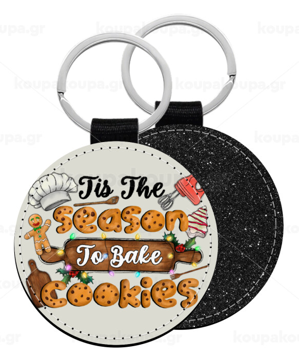 Tis The Season To Bake Cookies, Μπρελόκ Δερματίνη, στρογγυλό ΜΑΥΡΟ (5cm)