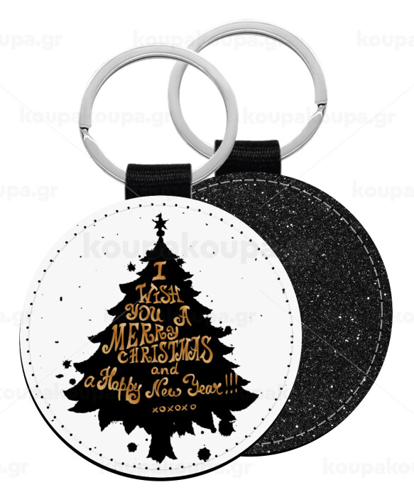 Tree, i wish you a merry christmas and a Happy New Year!!! xoxoxo, Μπρελόκ Δερματίνη, στρογγυλό ΜΑΥΡΟ (5cm)