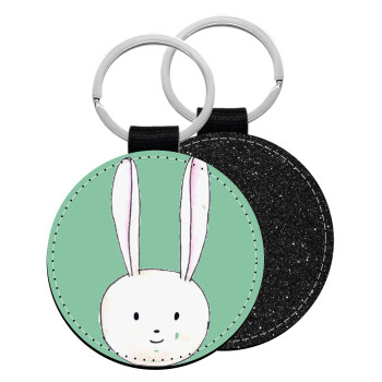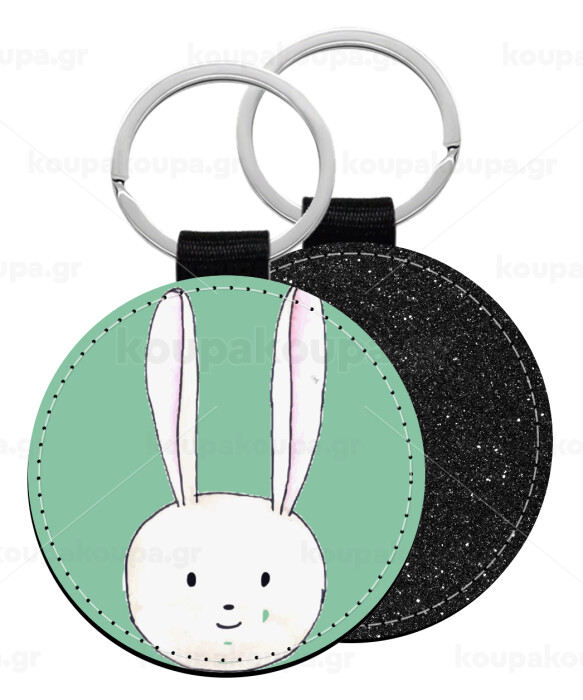 Ο λαγός του πάσχα, Μπρελόκ Δερματίνη, στρογγυλό ΜΑΥΡΟ (5cm)