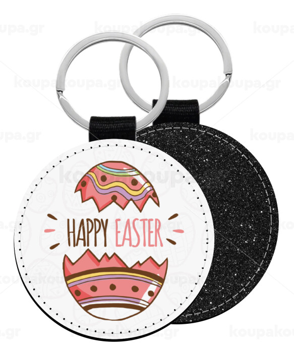 Happy easter egg, Μπρελόκ Δερματίνη, στρογγυλό ΜΑΥΡΟ (5cm)
