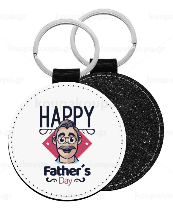 Για την γιορτή του μπαμπά!, Μπρελόκ Δερματίνη, στρογγυλό ΜΑΥΡΟ (5cm)