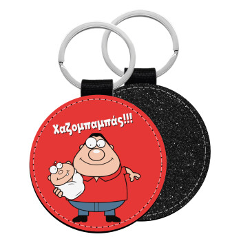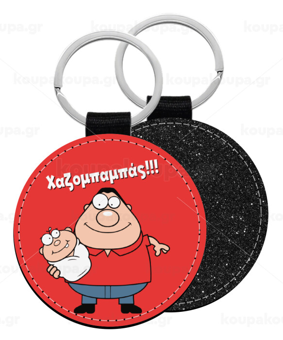 Χαζομπαμπάς, Μπρελόκ Δερματίνη, στρογγυλό ΜΑΥΡΟ (5cm)