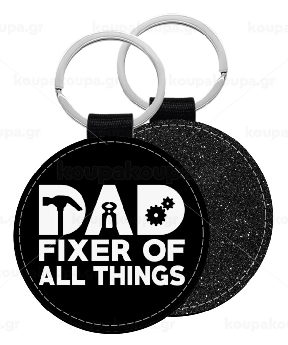 DAD, fixer of all thinks, Μπρελόκ Δερματίνη, στρογγυλό ΜΑΥΡΟ (5cm)