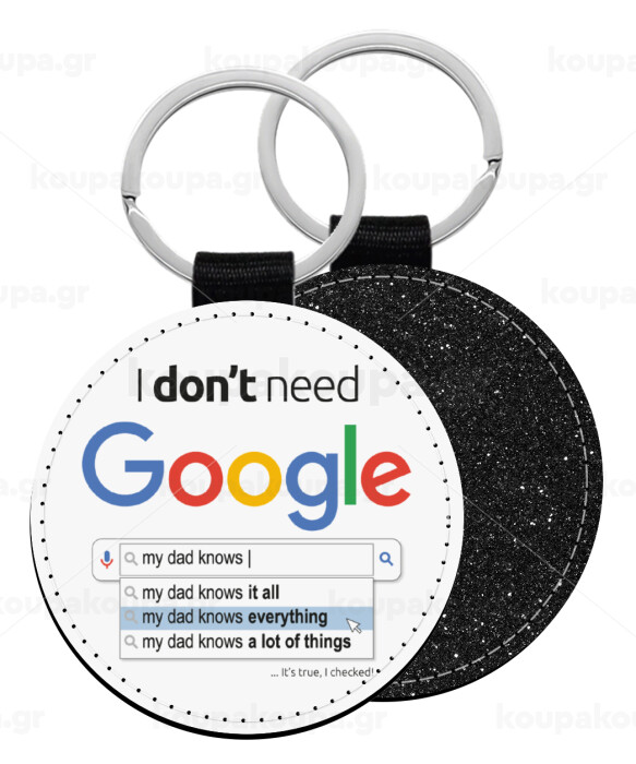 I don't need Google my dad..., Μπρελόκ Δερματίνη, στρογγυλό ΜΑΥΡΟ (5cm)