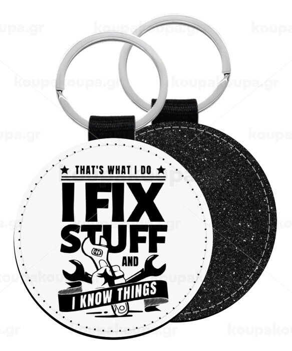 I fix stuff, Μπρελόκ Δερματίνη, στρογγυλό ΜΑΥΡΟ (5cm)