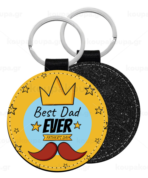 King, Best dad ever, Μπρελόκ Δερματίνη, στρογγυλό ΜΑΥΡΟ (5cm)