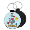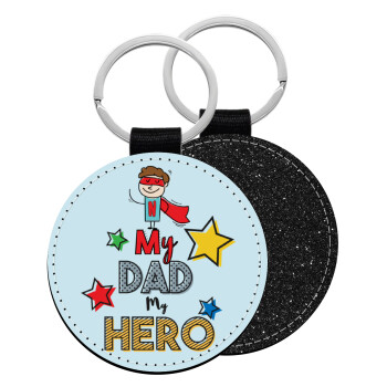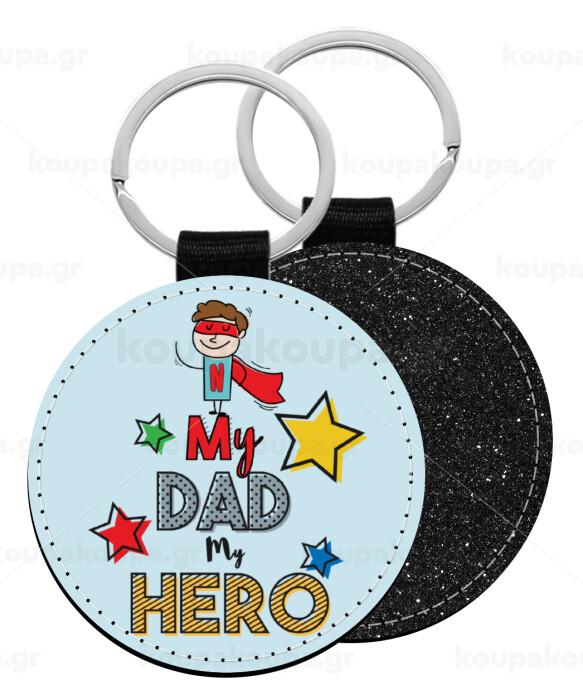 My Dad, my Hero!!!, Μπρελόκ Δερματίνη, στρογγυλό ΜΑΥΡΟ (5cm)