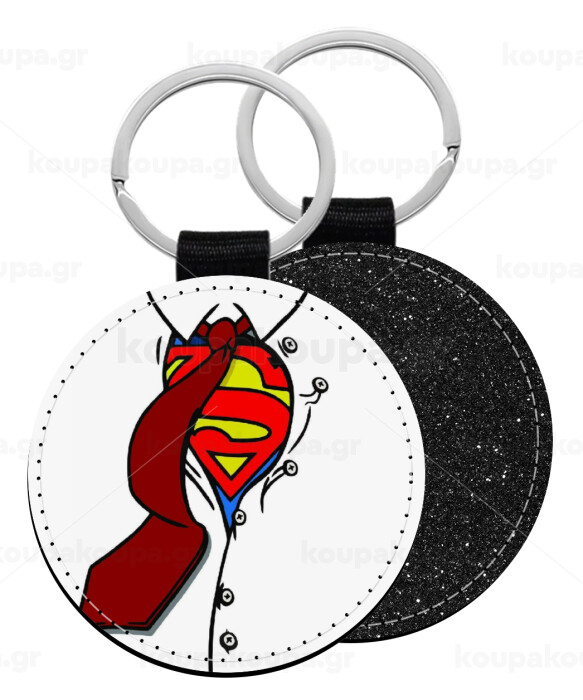 SuperDad, Μπρελόκ Δερματίνη, στρογγυλό ΜΑΥΡΟ (5cm)