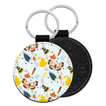 Πεταλούδες, Μπρελόκ Δερματίνη, στρογγυλό ΜΑΥΡΟ (5cm)