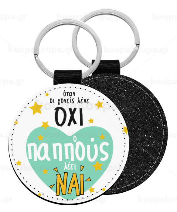 Όταν οι γονείς λένε ΟΧΙ, ο παππούς λέει ΝΑΙ, Μπρελόκ Δερματίνη, στρογγυλό ΜΑΥΡΟ (5cm)