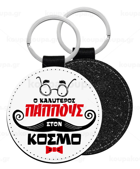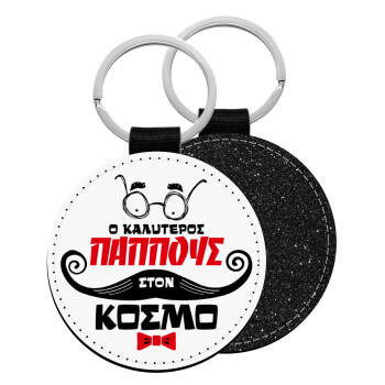 Ο καλύτερος παππούς του κόσμου!, Μπρελόκ Δερματίνη, στρογγυλό ΜΑΥΡΟ (5cm)