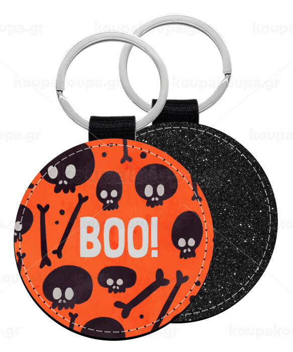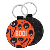 Halloween boo, Μπρελόκ Δερματίνη, στρογγυλό ΜΑΥΡΟ (5cm)