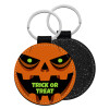 Halloween trick or treat Pumpkins, Μπρελόκ Δερματίνη, στρογγυλό ΜΑΥΡΟ (5cm)