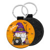 Happy Halloween (Χαλοουίν), Μπρελόκ Δερματίνη, στρογγυλό ΜΑΥΡΟ (5cm)
