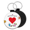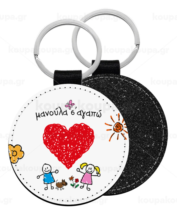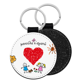 Μανούλα σ'αγαπώ!, Μπρελόκ Δερματίνη, στρογγυλό ΜΑΥΡΟ (5cm)