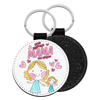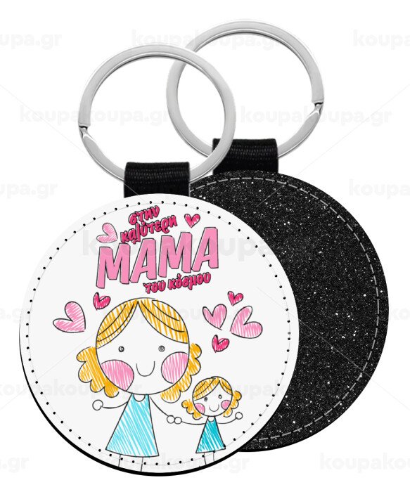 Στην καλύτερη μαμά του κόσμου, comic, Μπρελόκ Δερματίνη, στρογγυλό ΜΑΥΡΟ (5cm)