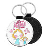 Leatherette keychain with glitter on one side and high resistance leatherette on the other. Safety ring for the keys.