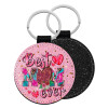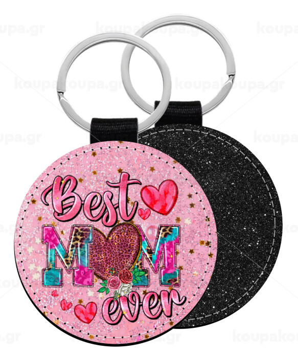 Best mom ever Mother's Day pink, Μπρελόκ Δερματίνη, στρογγυλό ΜΑΥΡΟ (5cm)