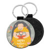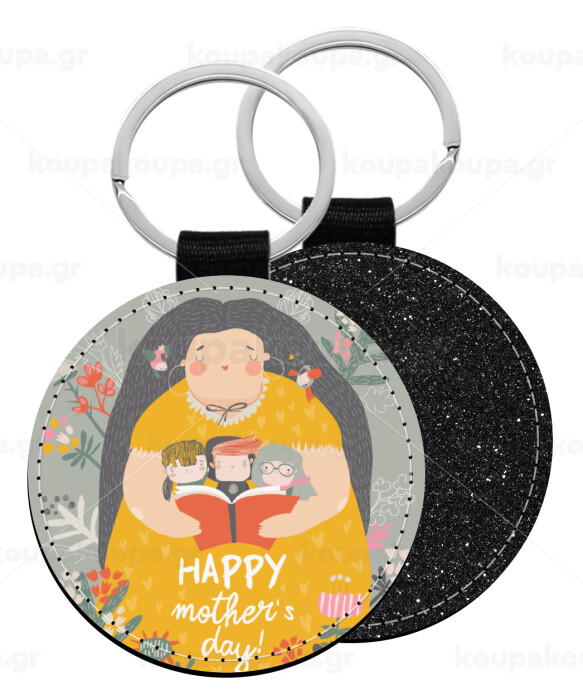 Cute mother reading book, happy mothers day, Μπρελόκ Δερματίνη, στρογγυλό ΜΑΥΡΟ (5cm)