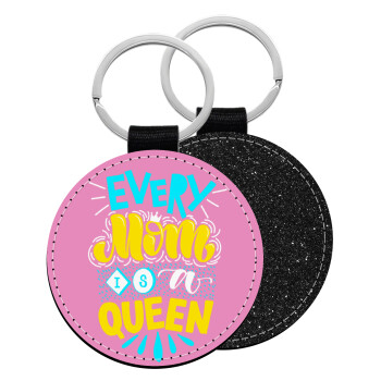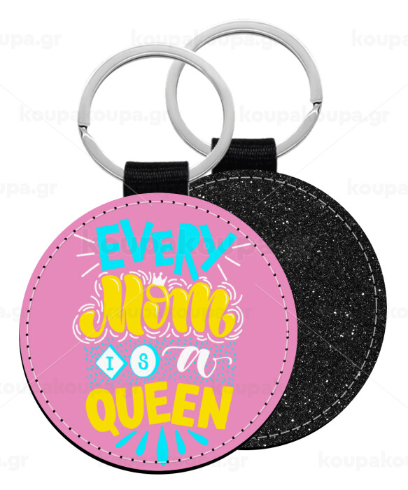 Every mom is a Queen, Μπρελόκ Δερματίνη, στρογγυλό ΜΑΥΡΟ (5cm)
