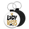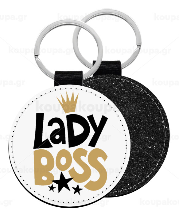 Lady Boss, Μπρελόκ Δερματίνη, στρογγυλό ΜΑΥΡΟ (5cm)
