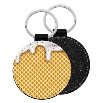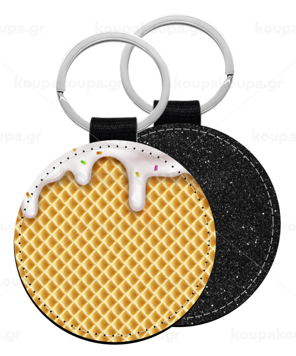 Παγωτό, Μπρελόκ Δερματίνη, στρογγυλό ΜΑΥΡΟ (5cm)