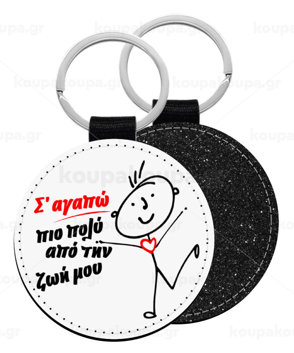 Σ'αγαπώ πιο πολύ από την ζωή μου!!!, Μπρελόκ Δερματίνη, στρογγυλό ΜΑΥΡΟ (5cm)
