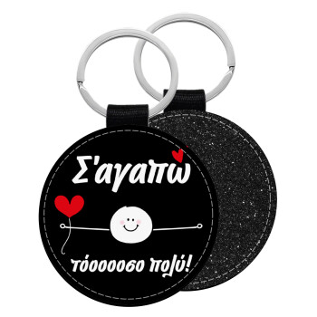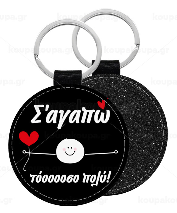 Σ΄αγαπώ τόοοοσο πολύ (Αγόρι)!!!, Μπρελόκ Δερματίνη, στρογγυλό ΜΑΥΡΟ (5cm)
