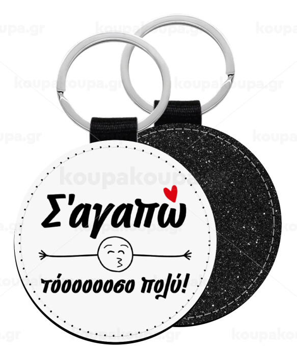 Σ΄ αγαπώ τόοοοοοσο πολύ!!!, Μπρελόκ Δερματίνη, στρογγυλό ΜΑΥΡΟ (5cm)
