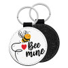 Bee mine!!!, Μπρελόκ Δερματίνη, στρογγυλό ΜΑΥΡΟ (5cm)