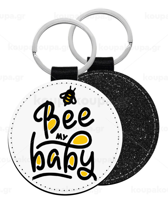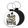 Bee my BABY!!!, Μπρελόκ Δερματίνη, στρογγυλό ΜΑΥΡΟ (5cm)