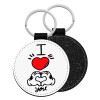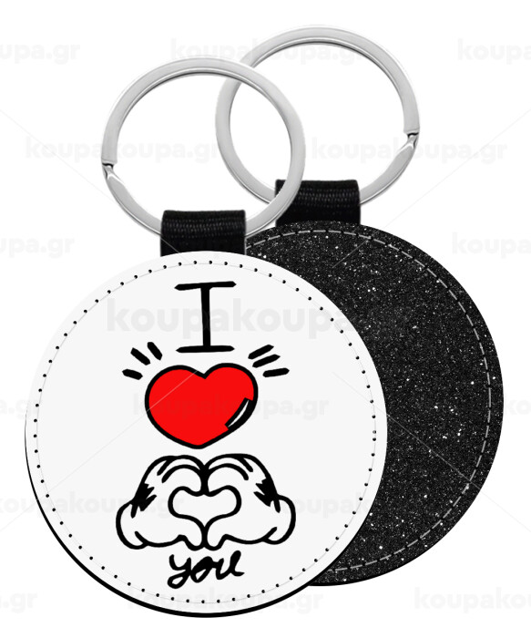 comics hands love, Μπρελόκ Δερματίνη, στρογγυλό ΜΑΥΡΟ (5cm)