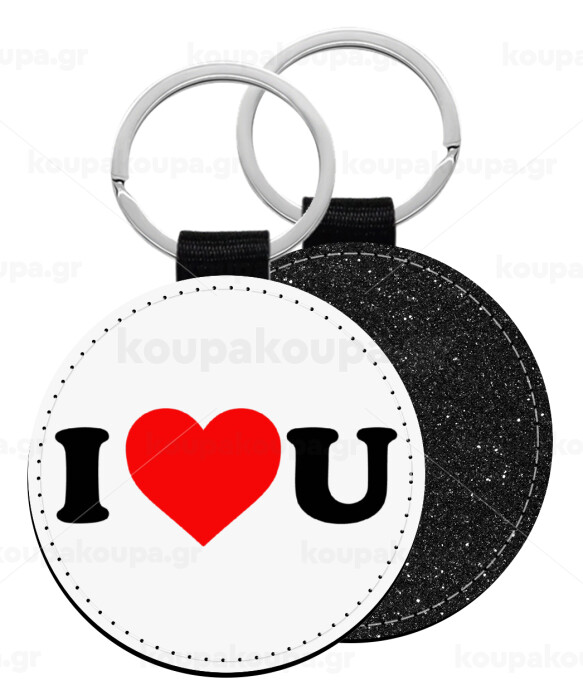I ❤️ U, Μπρελόκ Δερματίνη, στρογγυλό ΜΑΥΡΟ (5cm)