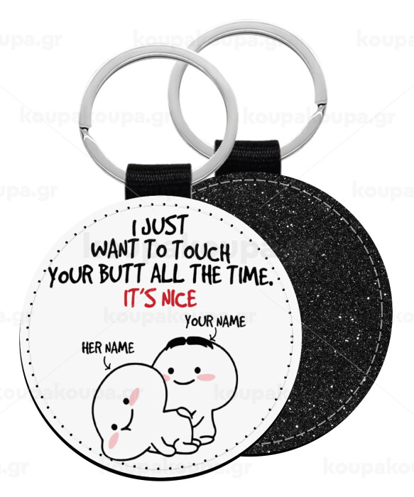 I Just Want To Touch Your Butt All The Time, Μπρελόκ Δερματίνη, στρογγυλό ΜΑΥΡΟ (5cm)
