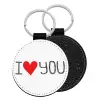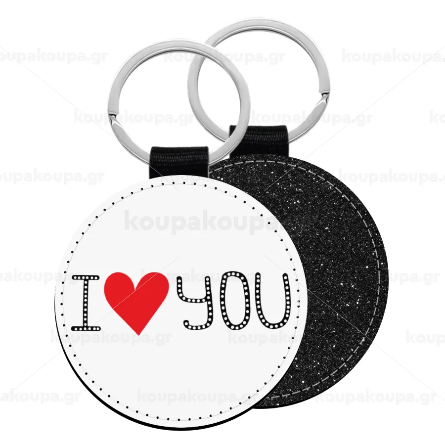 I Love You small dots, Μπρελόκ Δερματίνη, στρογγυλό ΜΑΥΡΟ (5cm)