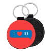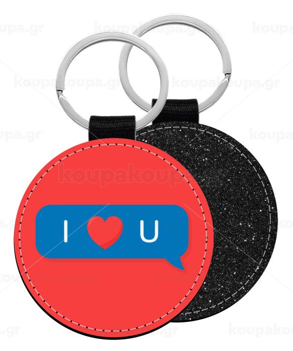 I Love You text message, Μπρελόκ Δερματίνη, στρογγυλό ΜΑΥΡΟ (5cm)