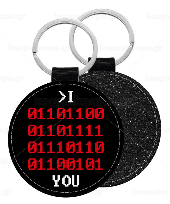 I .... YOU, binary secret MSG, Μπρελόκ Δερματίνη, στρογγυλό ΜΑΥΡΟ (5cm)