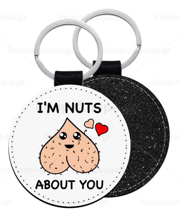 I'm Nuts About You, Μπρελόκ Δερματίνη, στρογγυλό ΜΑΥΡΟ (5cm)