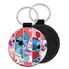 Lilo & Stitch Love, Μπρελόκ Δερματίνη, στρογγυλό ΜΑΥΡΟ (5cm)