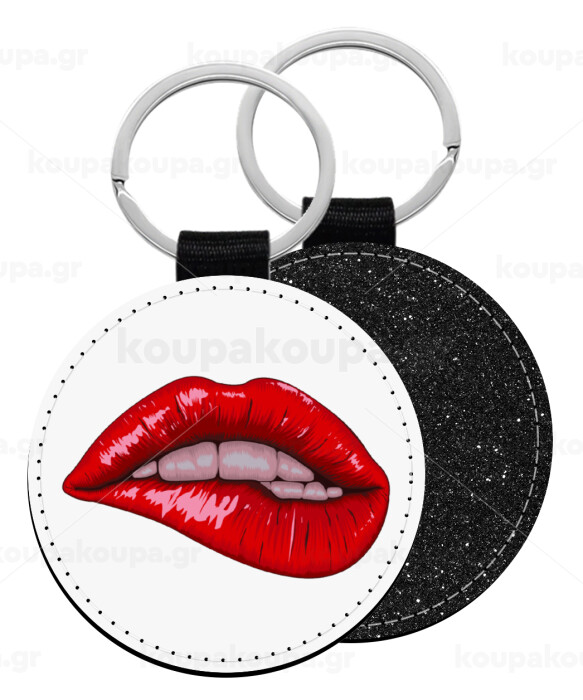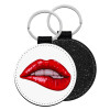 Lips, Μπρελόκ Δερματίνη, στρογγυλό ΜΑΥΡΟ (5cm)