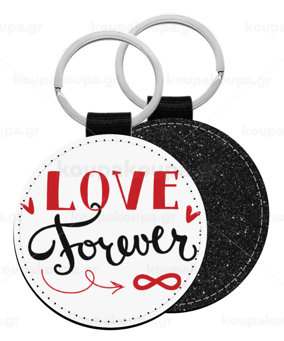 Love forever ∞, Μπρελόκ Δερματίνη, στρογγυλό ΜΑΥΡΟ (5cm)