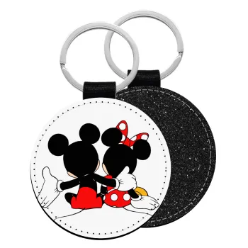 mickey and minnie hags, Μπρελόκ Δερματίνη, στρογγυλό ΜΑΥΡΟ (5cm)