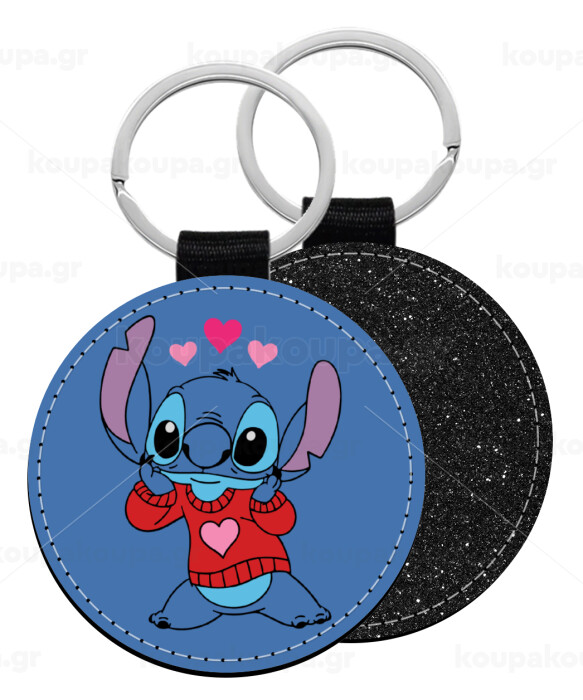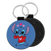 Stitch heart, Μπρελόκ Δερματίνη, στρογγυλό ΜΑΥΡΟ (5cm)