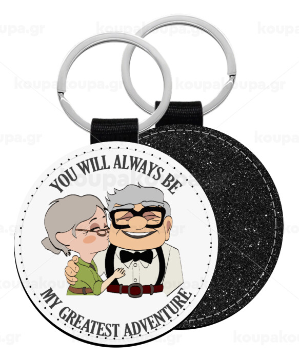 UP, YOU WILL ALWAYS BE MY GREATEST ADVENTURE, Μπρελόκ Δερματίνη, στρογγυλό ΜΑΥΡΟ (5cm)