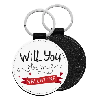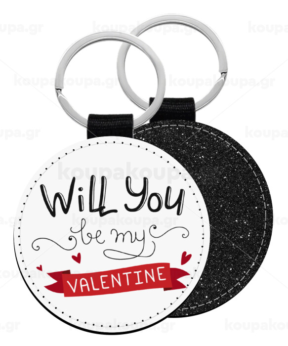 Will you be my Valentine???, Μπρελόκ Δερματίνη, στρογγυλό ΜΑΥΡΟ (5cm)