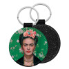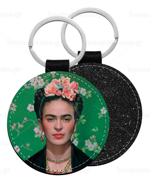 Frida Kahlo, Μπρελόκ Δερματίνη, στρογγυλό ΜΑΥΡΟ (5cm)