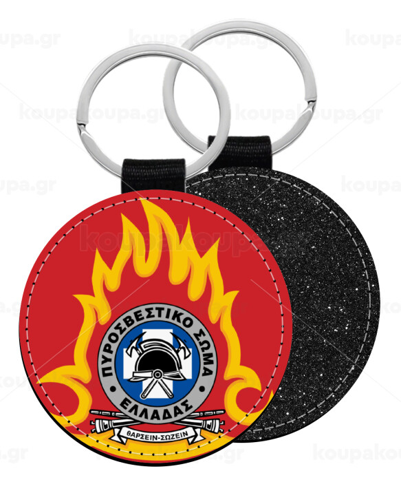 Πυροσβεστικό σώμα Ελλάδος, Μπρελόκ Δερματίνη, στρογγυλό ΜΑΥΡΟ (5cm)