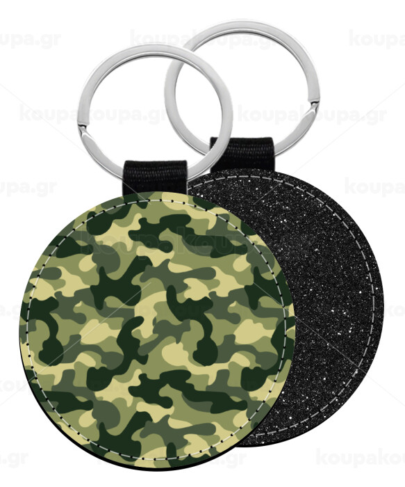 Army, Μπρελόκ Δερματίνη, στρογγυλό ΜΑΥΡΟ (5cm)