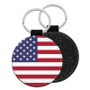 USA Flag, Μπρελόκ Δερματίνη, στρογγυλό ΜΑΥΡΟ (5cm)