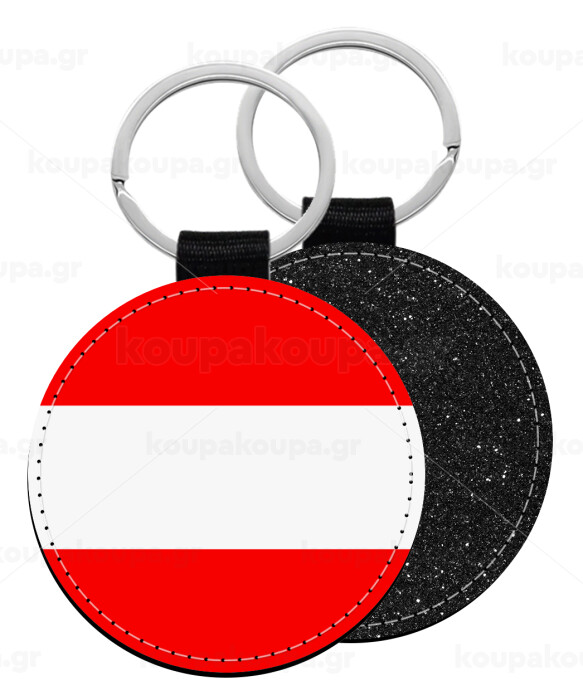 Austria flag, Μπρελόκ Δερματίνη, στρογγυλό ΜΑΥΡΟ (5cm)